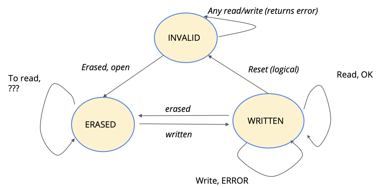 3. Write (a page): block이 삭제된 후에 page를 쓸 수 있다. write(page_number)