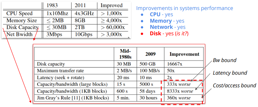 2. flash storage의 read latency는 HDD보다 훨씬 낮다. (10s of msecs vs 10s of usecs)